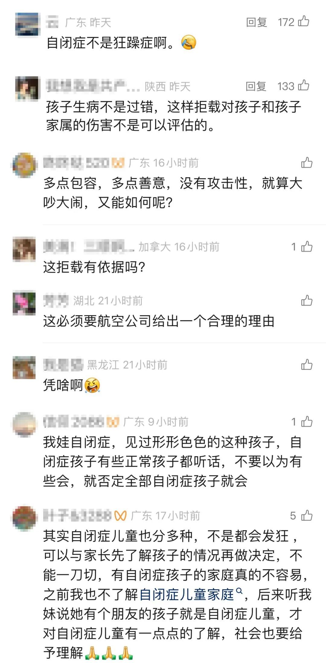 本想申请绿通优待,反被直接拒载,且除了一句冷冰冰的“影响客舱其他旅客乘机”反馈外并无任何沟通,这是最让孤独症患者及其家属受伤的粗暴和冷漠。